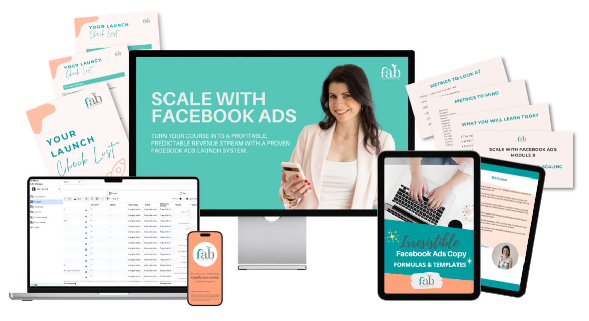 I created Scale with Facebook Ads because I know how overwhelming launches can feel. You don't need more hustle, more posting, or more guesswork. You need a repeatable system, a supportive coach, and the confidence to launch again and again.